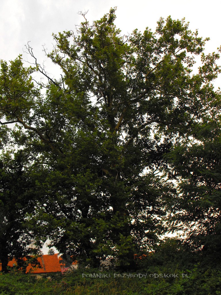 Posiada pień o obwodzie 560 cm, wysokość 25 metrów. Dobrze rozwiniętą koronę można obserwować również z drogi biegnącej w pobliżu strumienia.