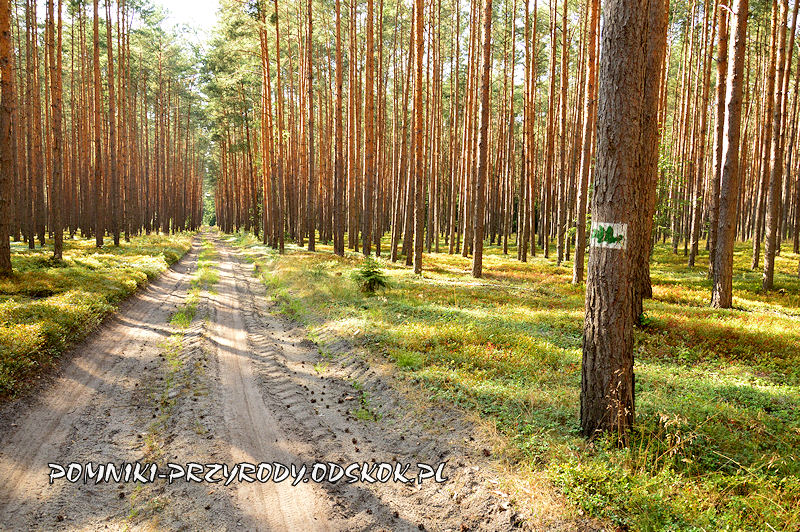 Dalsza droga prowadzi przez gospodarczy obszar sosnowego lasu. Po dojściu do asfaltowej drogi, należy skręcić w prawo by dotrzeć do punktu wyjścia.