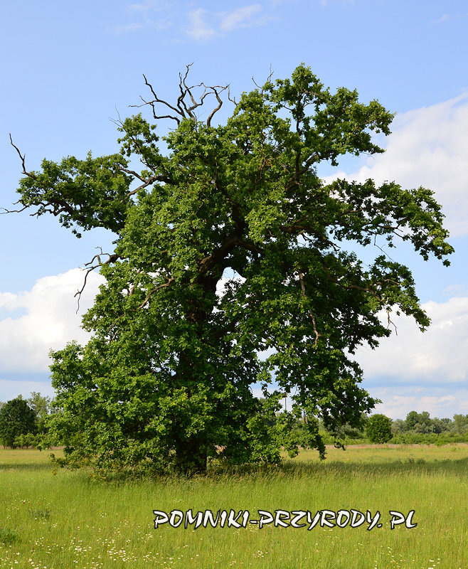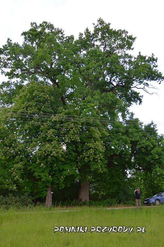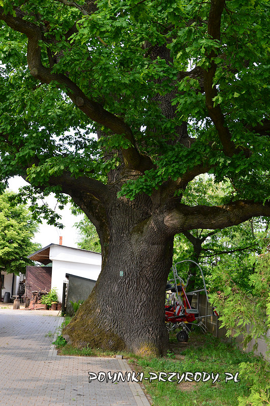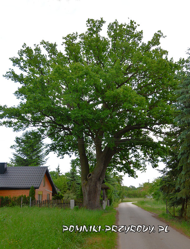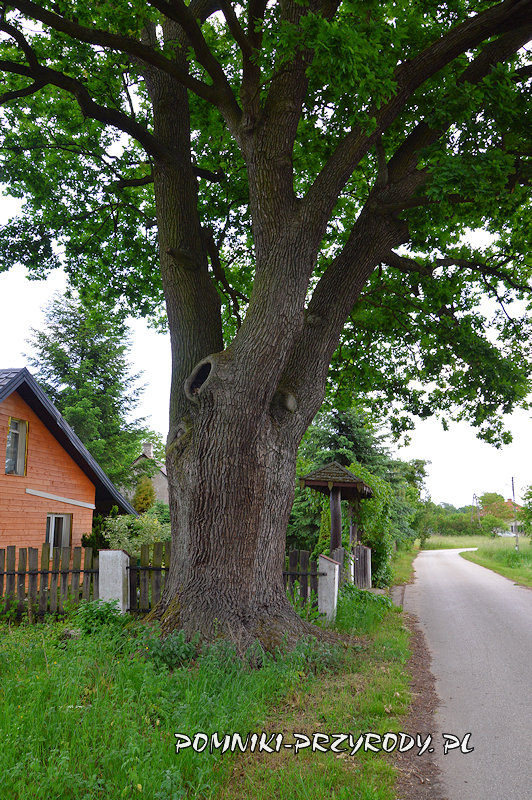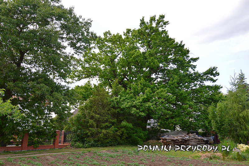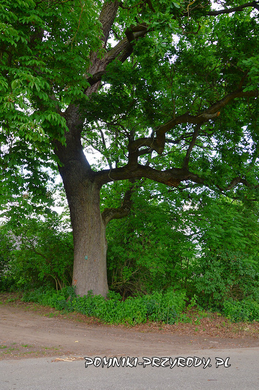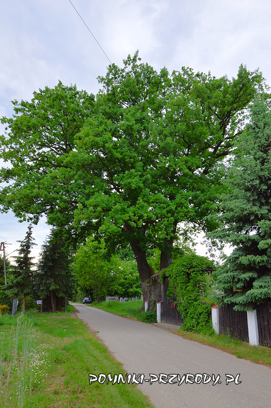 Nieco dalej na zachód, przy wjeździe na teren posesji nr 67 rośnie bezimienny, pomnikowy dąb o obwodzie 374 cm i wysokości 20 metrów.
