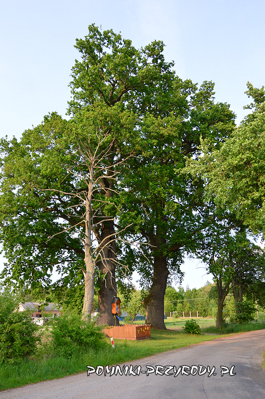 Według danych Centralnego Rejestru Form Ochrony Przyrody drzewa mierzą w obwodzie 509 i 543 cm, wysokość okazów odpowiednio 16 i 20 metrów. Dęby szypułkowe o takich obwodach liczą sobie ok. 250 – 300 lat.