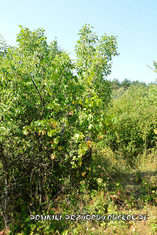 Nie udało się wypatrzyć na tym stanowisku dojrzałych gron tej niemal wymarłej odmiany winorośli, na zdjęciu poniżej znajdują się owoce karmazyna sfotografowane na Winnicy Miłosz.