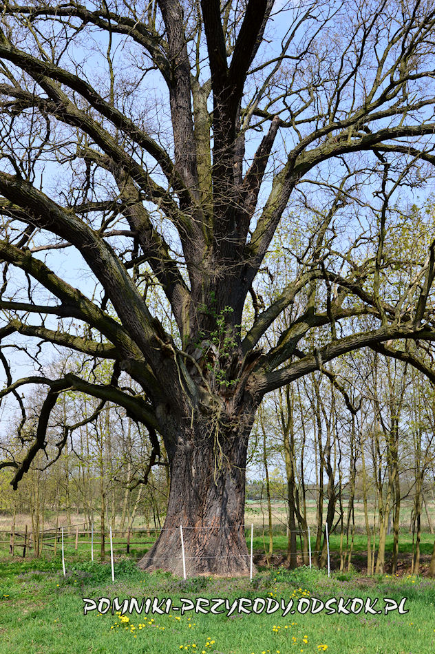 Okaz mierzy aż 744 cm w obwodzie, wysokość dębu 29 metrów.