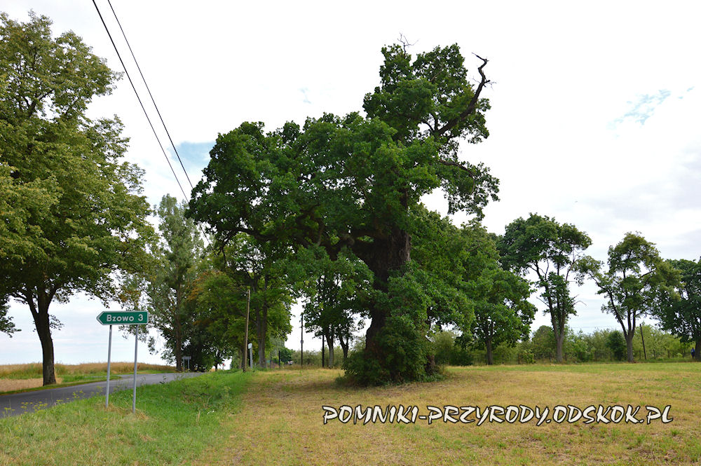 Najstarszy (żywy) dąb szypułkowy w Polsce rośnie 10 m od drogi Warlubie – Rulewo, po jej prawej (zachodniej) stronie, tuż przy skrzyżowaniu drogi do wsi Bzowo.
