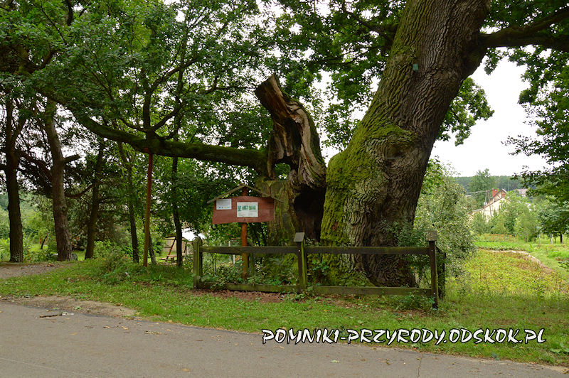 Ostatni w zestawieniu pomnikowy okaz to dąb szypułkowy o obwodzie 320 cm rosnący przy parkowym stawie, w pobliżu parkingu przy stadninie.